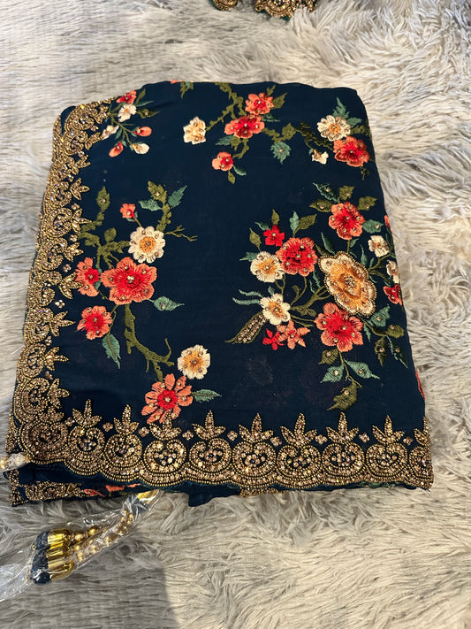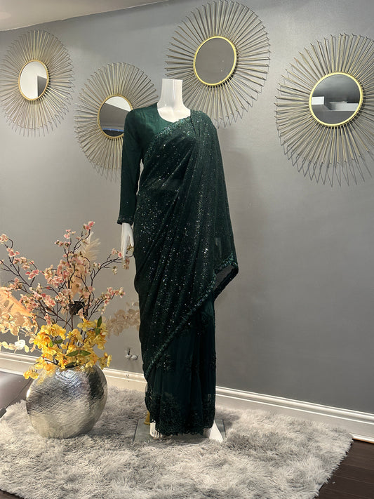 Stunning Heavy Blouse Saree With pearl work