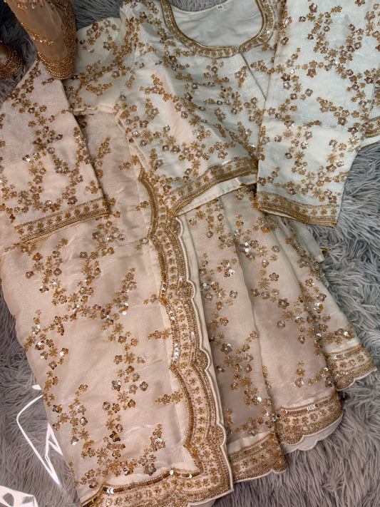 Sequence Half Net Saree With Ready Made Blouse