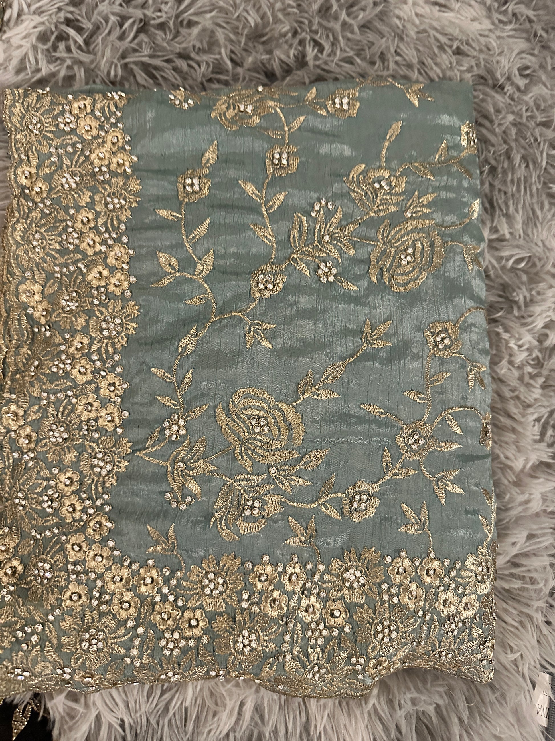 Stylish Gold work Saree with Blouse